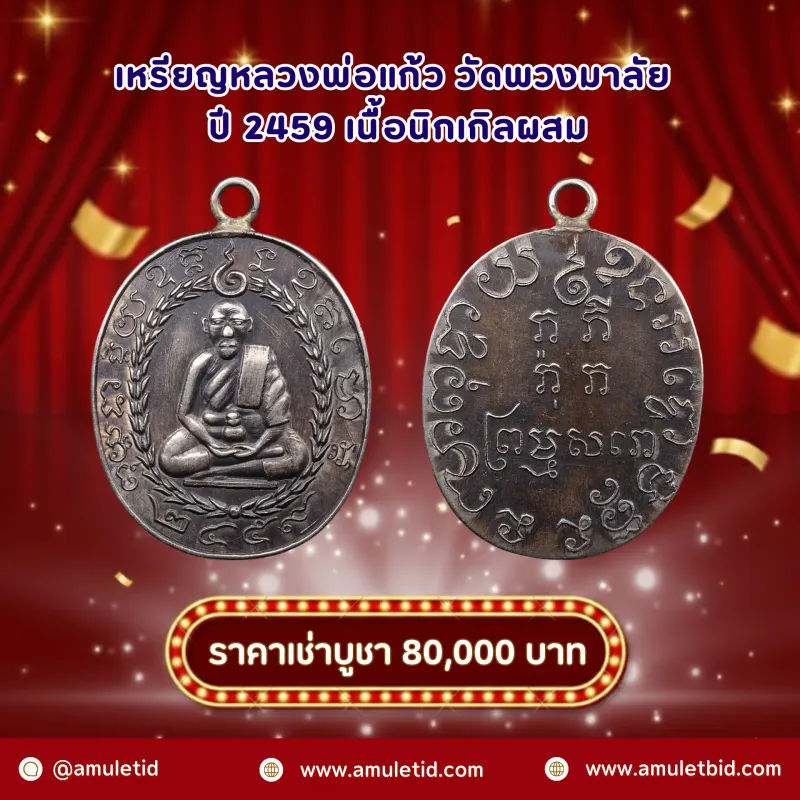 เหรียญหลวงพ่อแก้ว วัดพวงมาลัย ปี 2459 เนื้อนิกเกิลผสม