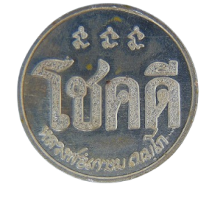 เหรียญโชคดี หลวงพ่อเกษม เขมโก ปี 2532 เนื้อนิกเกิลผสม