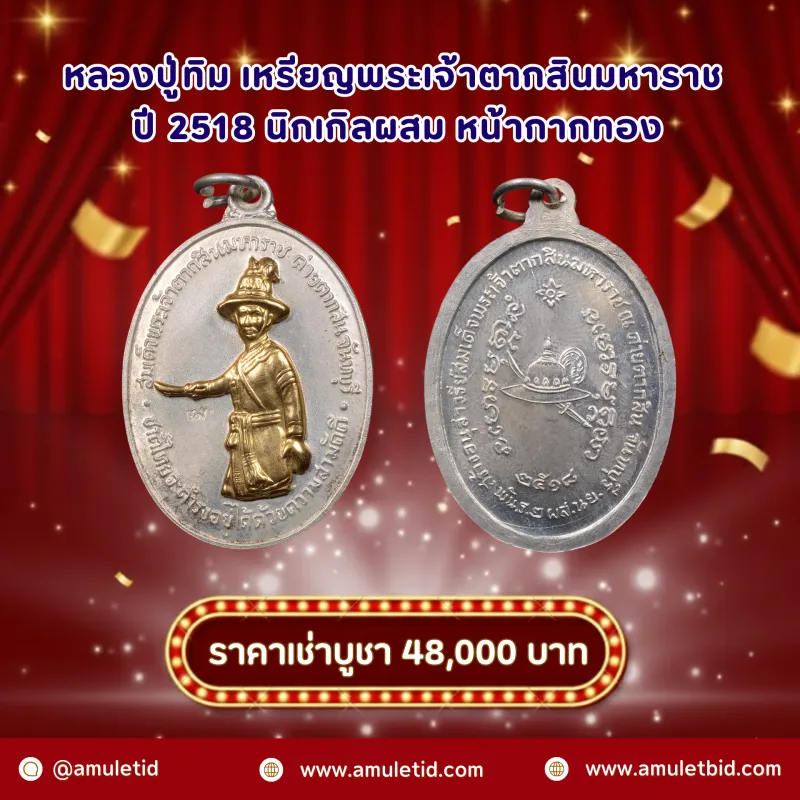 หลวงปู่ทิม เหรียญพระเจ้าตากสินมหาราช ปี 2518 นิกเกิลผสม หน้ากากทอง